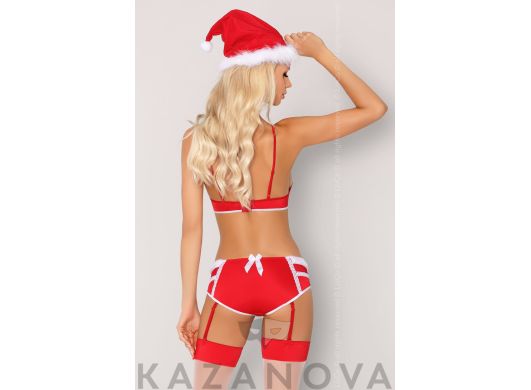 Новогодний образ для женщин. В комплекте: колпак, лиф, трусики и чулки.