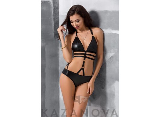 С открытой грудью. Сделано из ткани wetlook. Притягательный блеск.