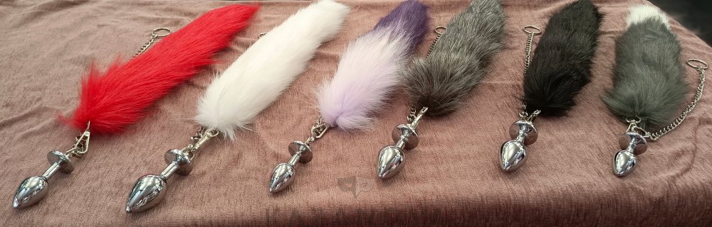 Анальная втулка металлическая с цепочкой и хвостом на карабинах D2,7 см