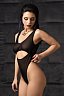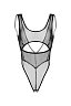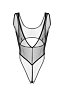 Эффектный вырез под грудью открывает чувствительную зону тела. Аккуратные вытачки и швы и создают силуэтную посадку. Дизайн боди визуально вытягивает ноги. Глубокий вырез сзади, тонкая перемычка между абсолютно открытыми ягодицами и эротический доступ подчеркивают чувственность образа.
