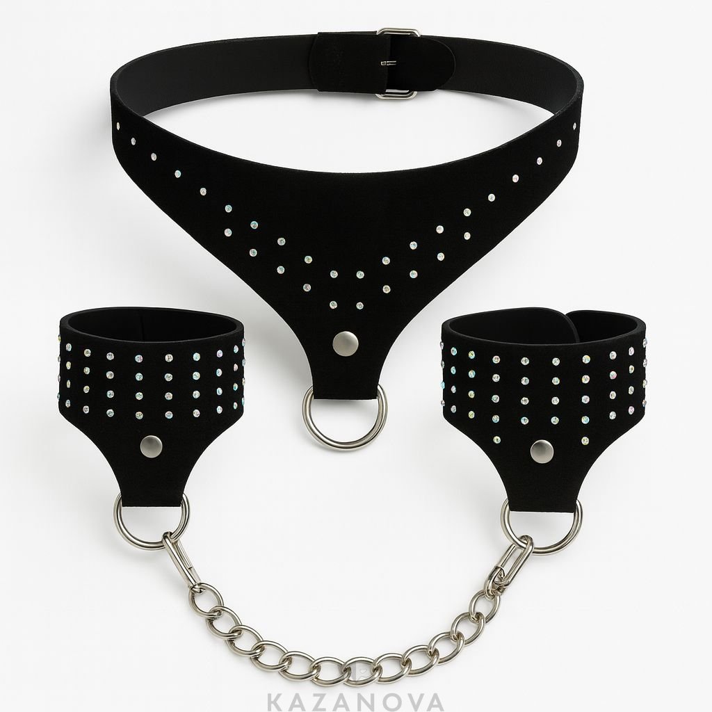 Бондажный комплект Арсенал со стразами замшевый (наручи, ошейник)