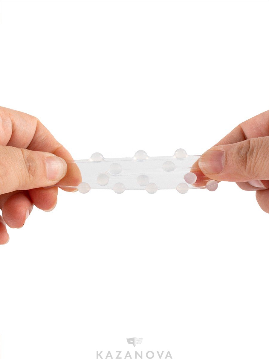 Интимный аксессуар изготовлен из эластичного материала. Хорошо тянется.