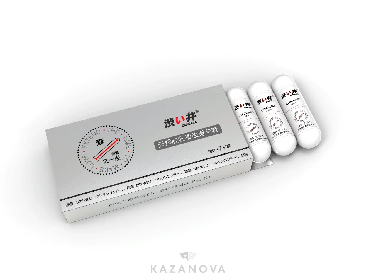Презервативы латексные с пролонгатором Drywell 0,03 со смазкой на водной основе 7 шт.