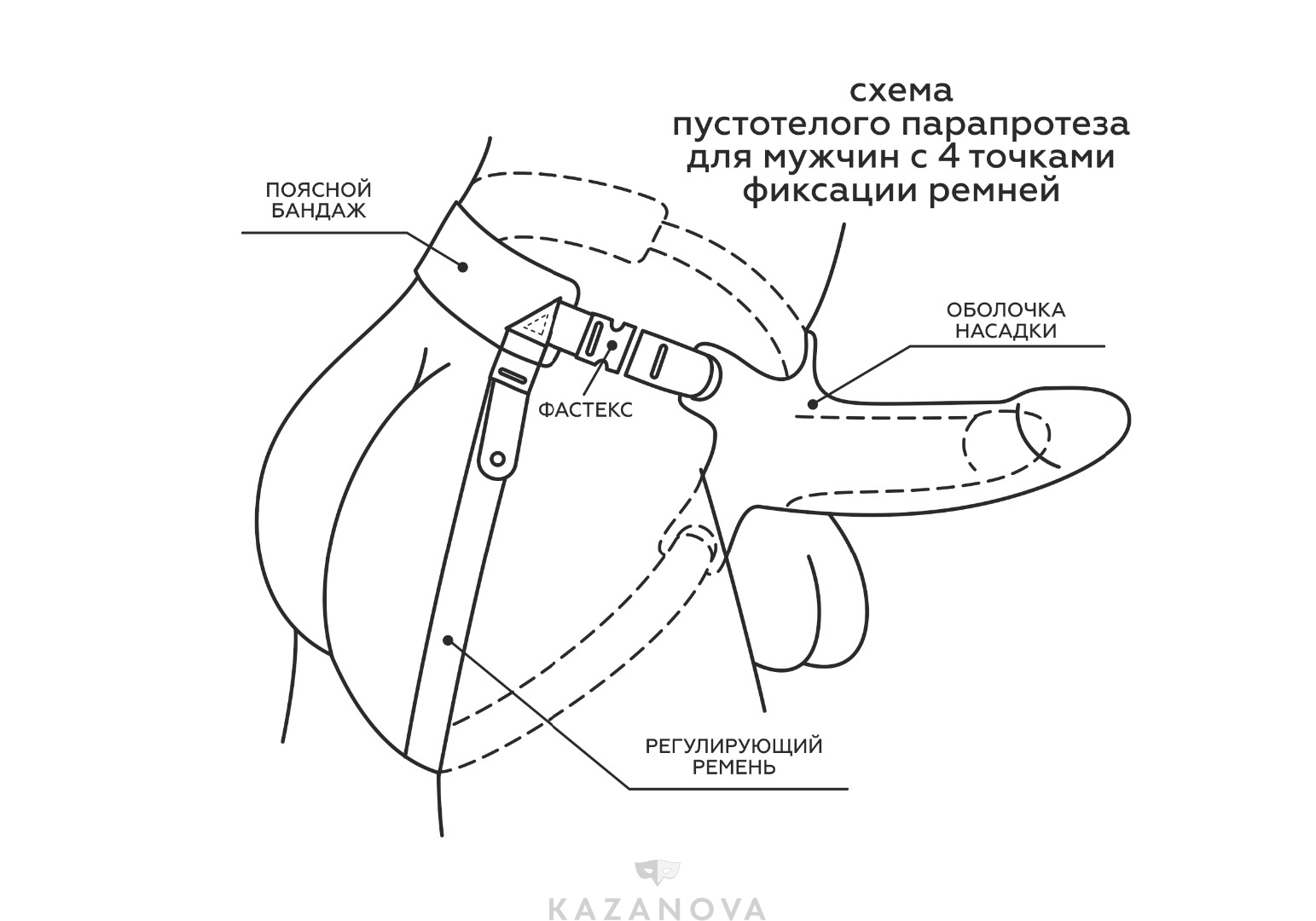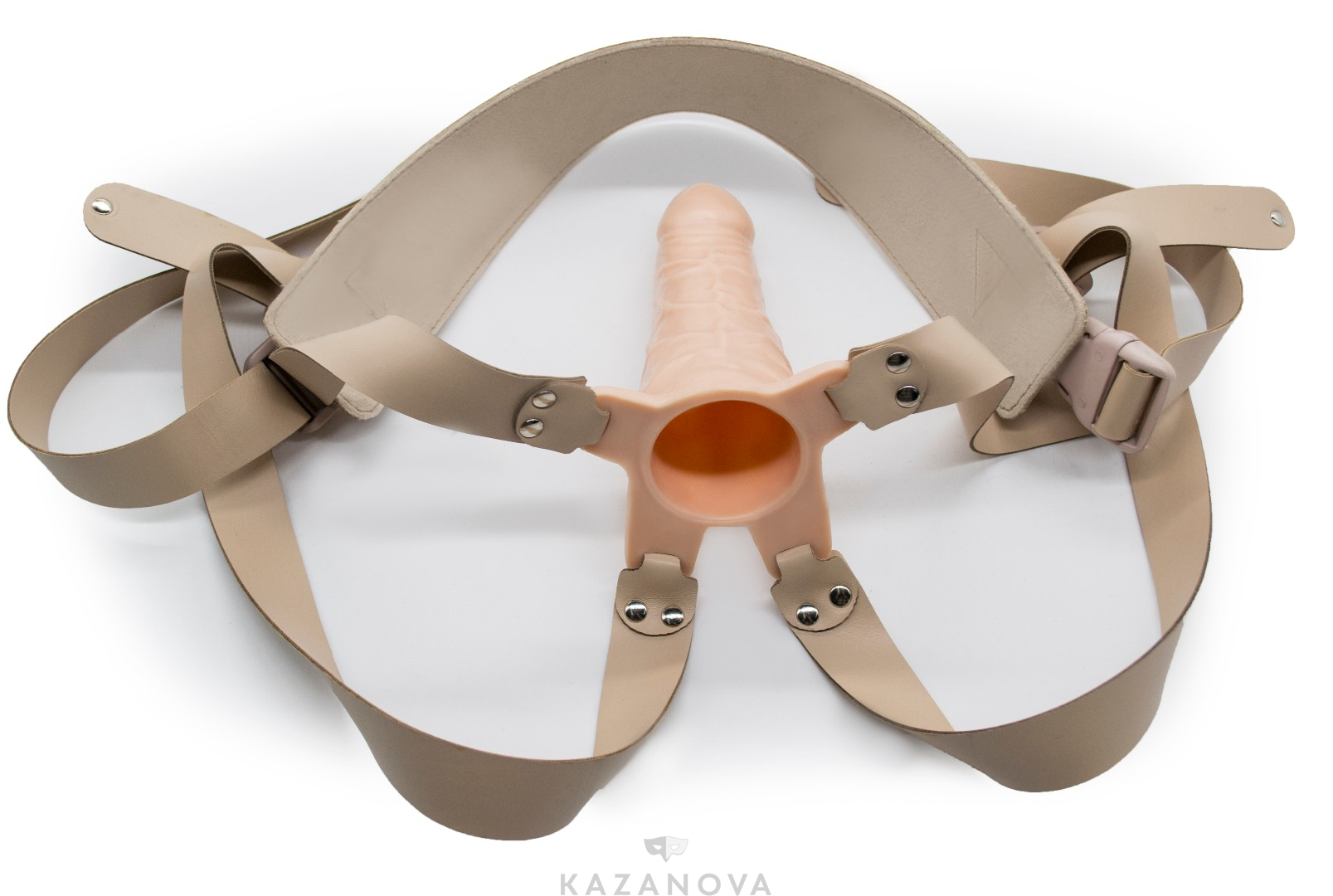 Страпон фиксируется на теле при помощи специальной системы ремней, подстраивающихся под индивидуальные параметры.