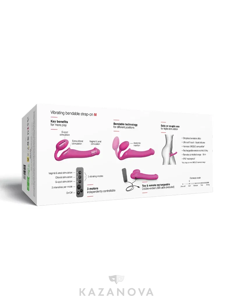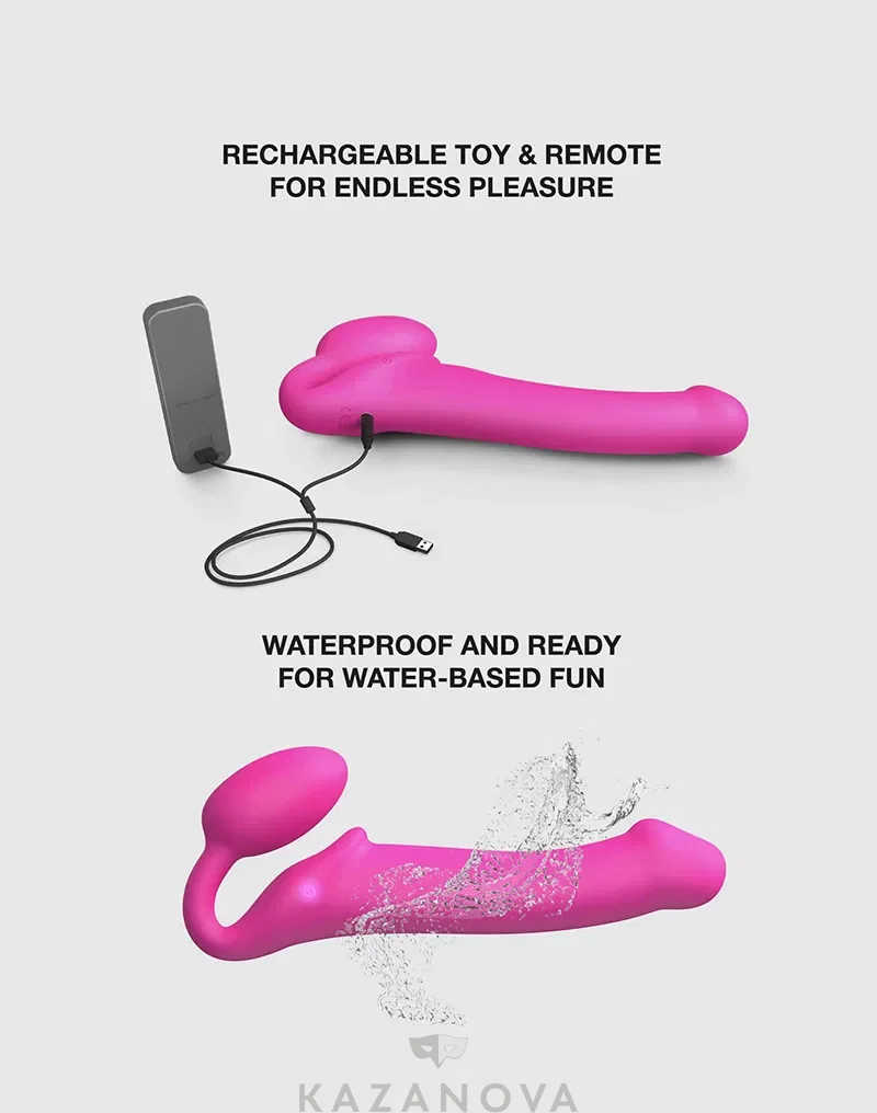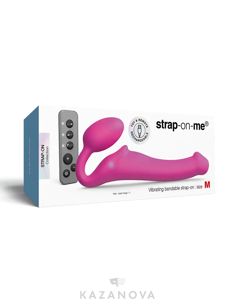 Страпон женский STRAP-ON-ME анатомический с вибрацией и пультом д/у розовый M