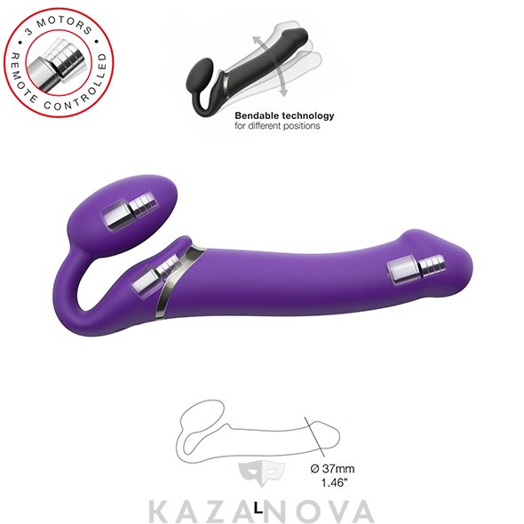 Страпон женский STRAP-ON-ME анатомический с вибрацией и пультом д/у L фиолетовый