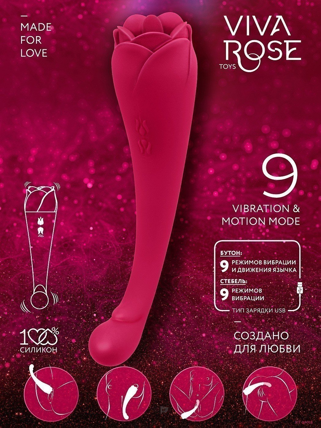 Более широкая часть изделия в виде бутона розы оснащена небольшим язычком, который имитирует оральные ласки. Язычок вибрирует и движется в 9 разных направлениях. Вибрация в стволе и язычок могут работать как одновременно, так и по отдельности.