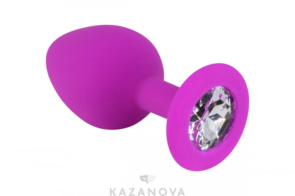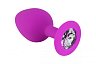 Втулка анальная из силикона средняя фиолетовая с стразом 8 см
