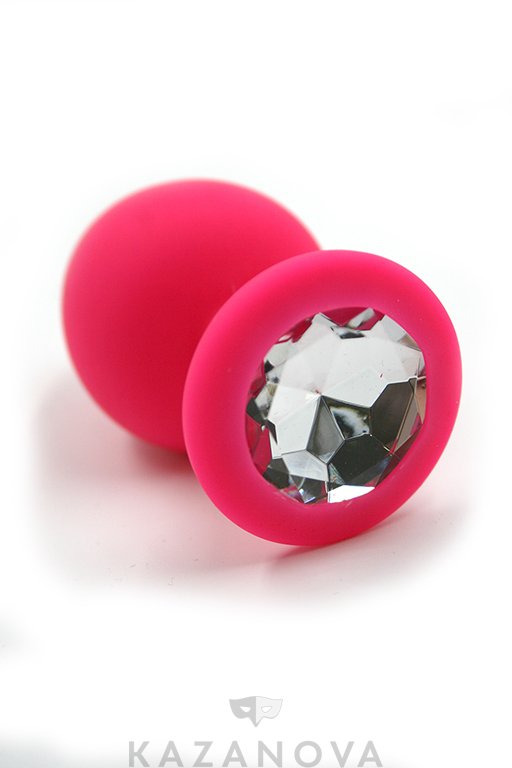 Втулка анальная Kanikule из силикона средняя розовая с прозрачным стразом
