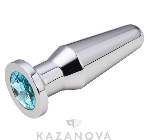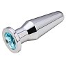 Втулка анальная металлическая средняя с голубым кристаллом 05