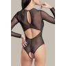 Боди с рукавами. Застежка на шее. Подчёркивает фигуру. Вырез на спине.