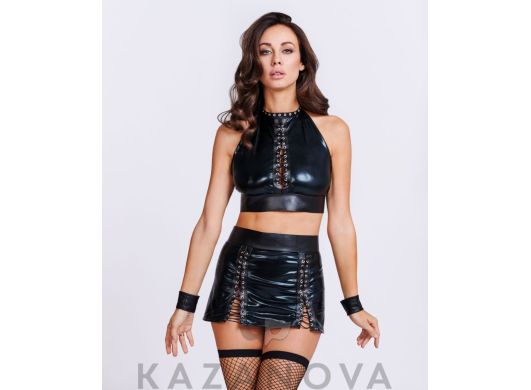 Эластичный материал. Кружевные вставки. Шнуровка спереди.